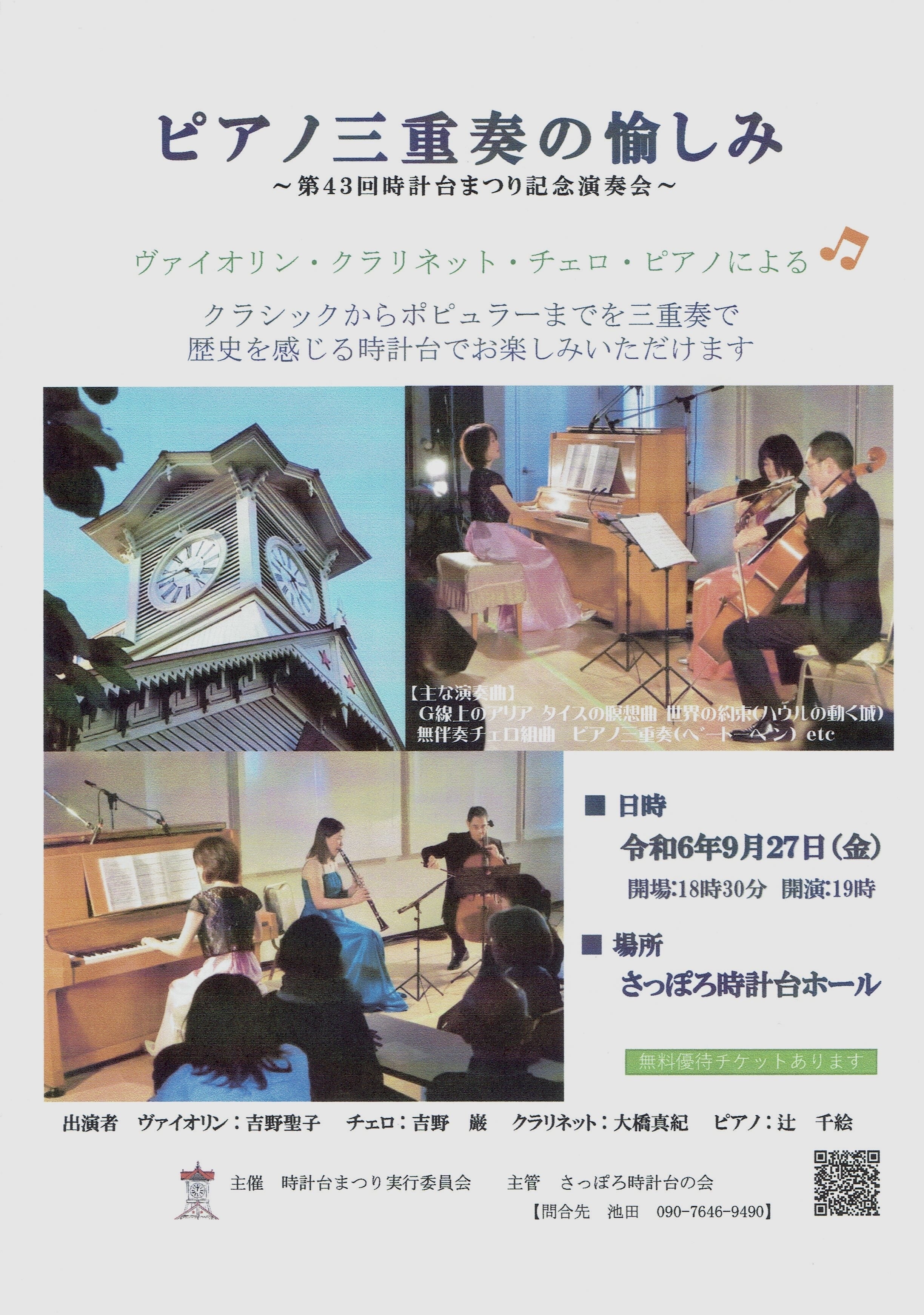 9/27 第43回時計台まつり記念演奏会 ピアノ三重奏の愉しみ