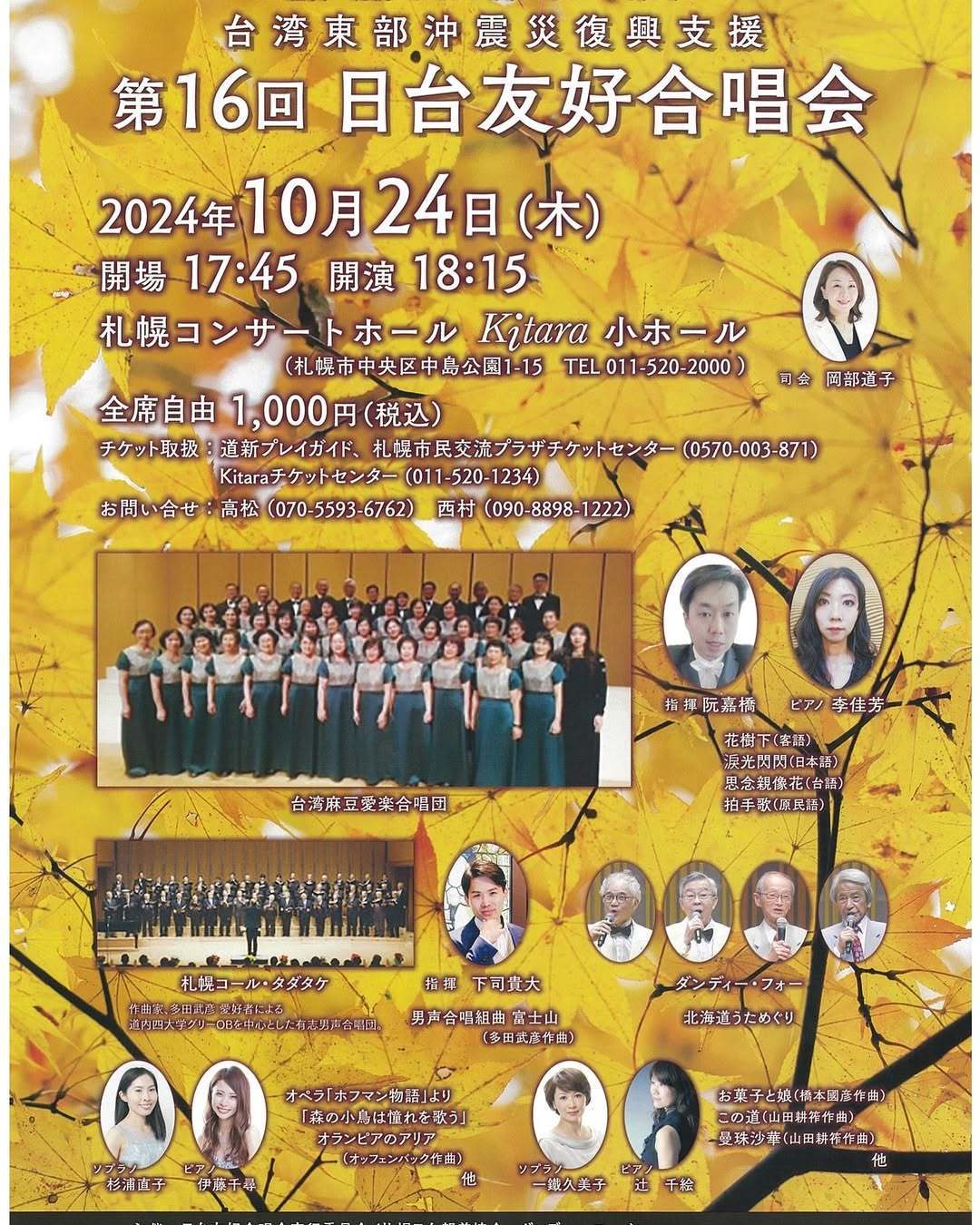 2022 10/21(金)第14回日台友好合唱会 フレンドリーコンサート〜日台 歌の架け橋を渡る〜
