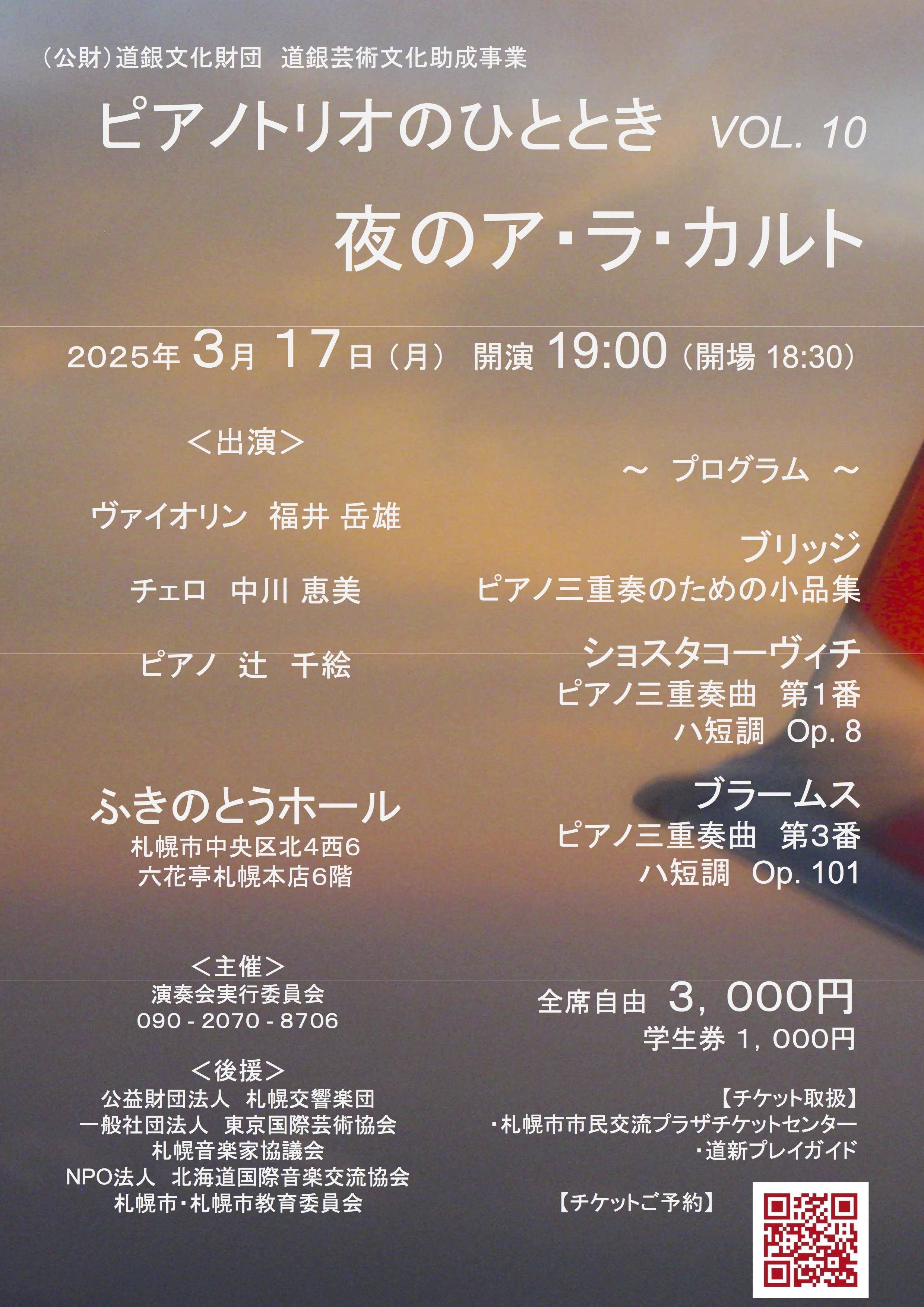 3/17(月)ピアノトリオのひととき vol.10 夜のア・ラ・カルト