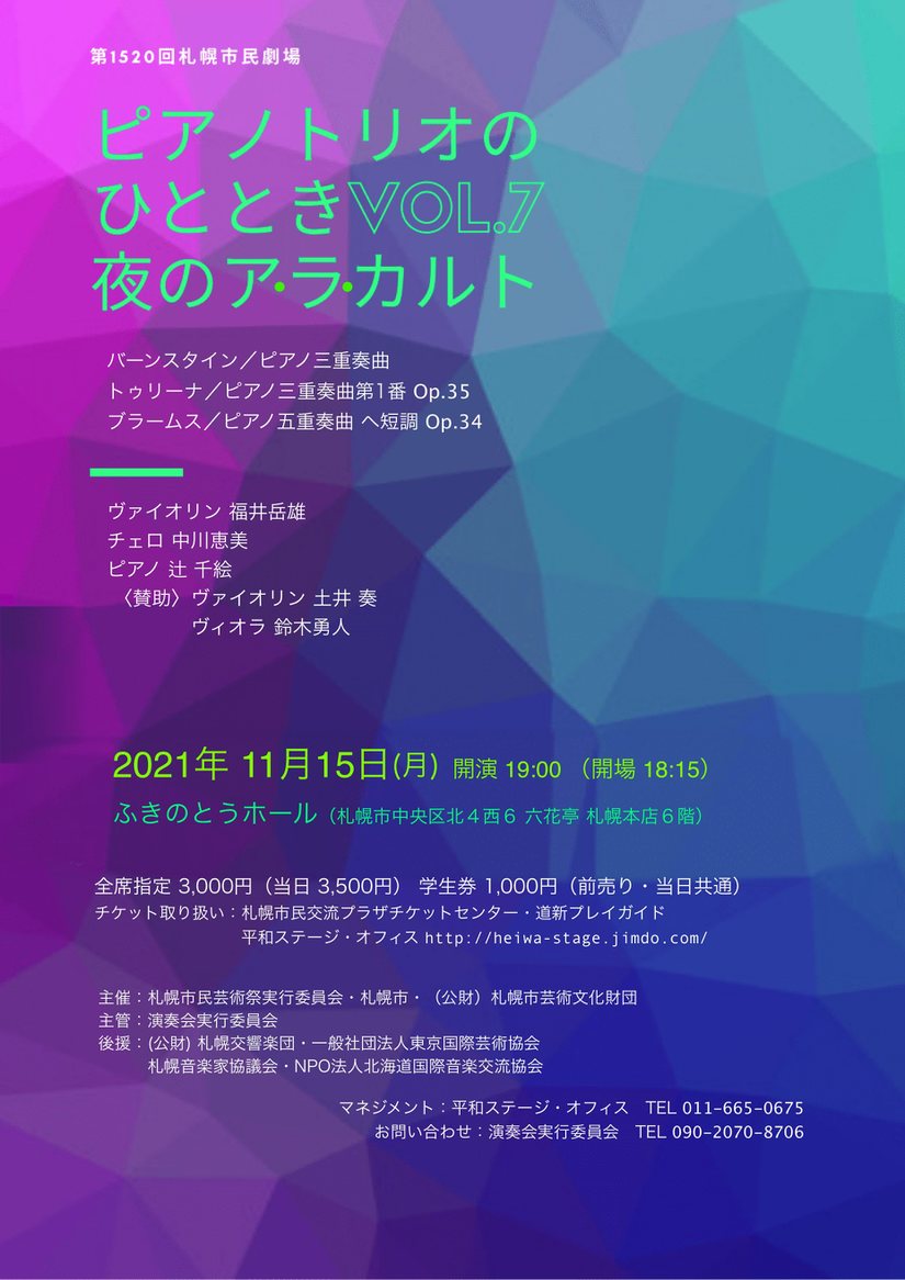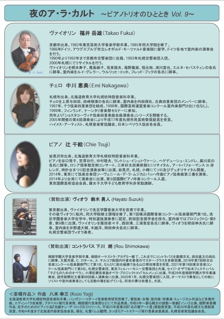 9/27 第43回時計台まつり記念演奏会 ピアノ三重奏の愉しみ