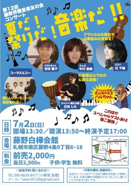 7/2(日)第12回藤野界隈音楽友の会コンサート 夏だ!まつりだ!音楽だ!!