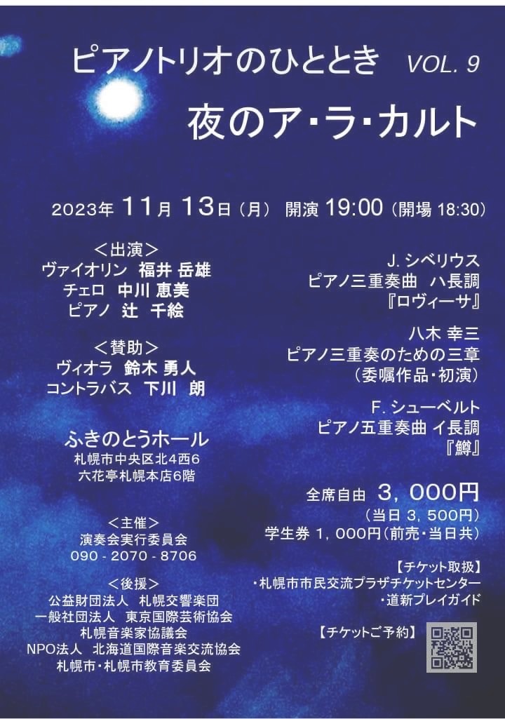 11/13(月)ピアノトリオのひととき VOL.9 夜のア・ラ・カルト