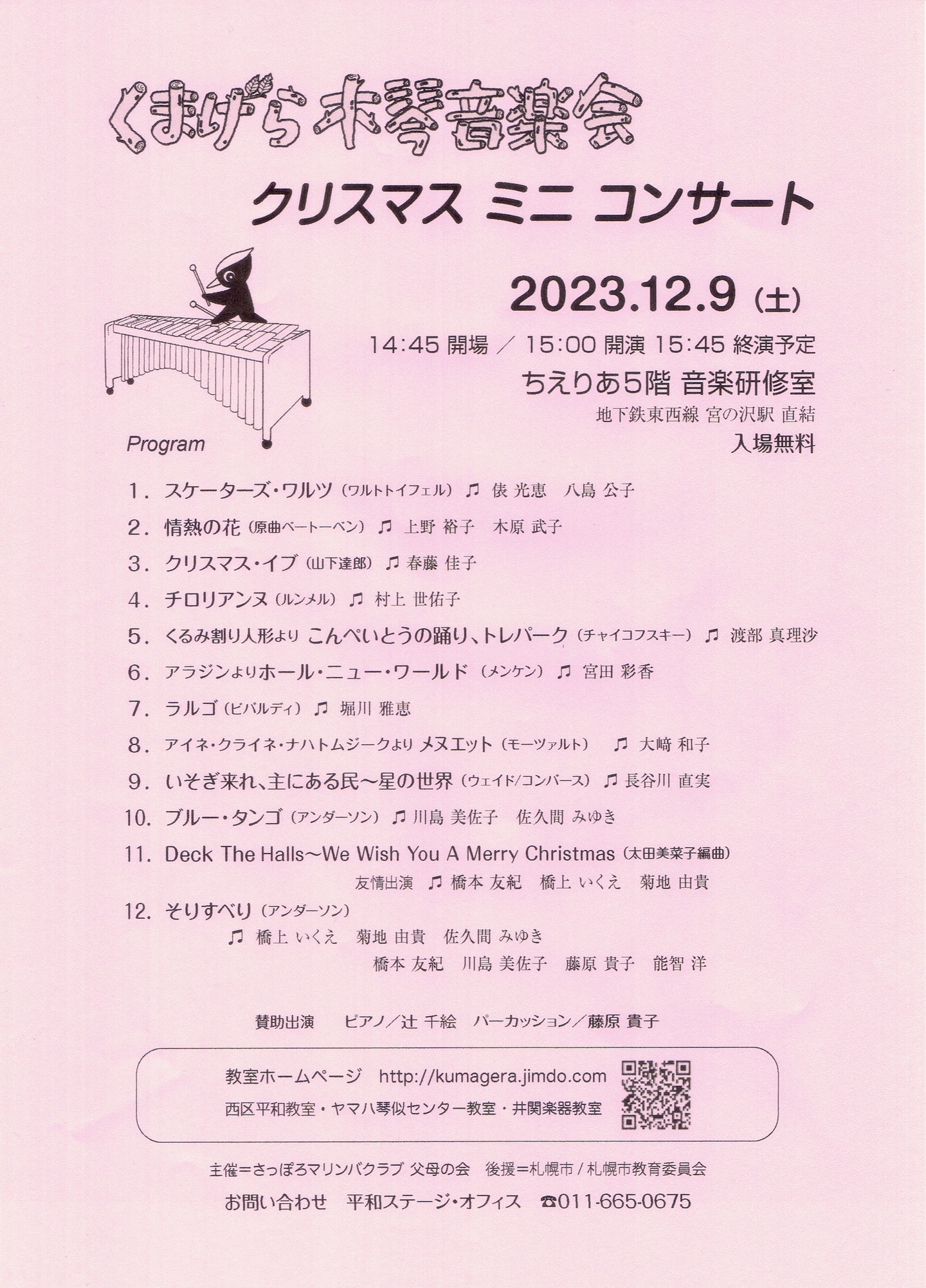 12/9(土)くまげら木琴音楽会 クリスマスコンサート