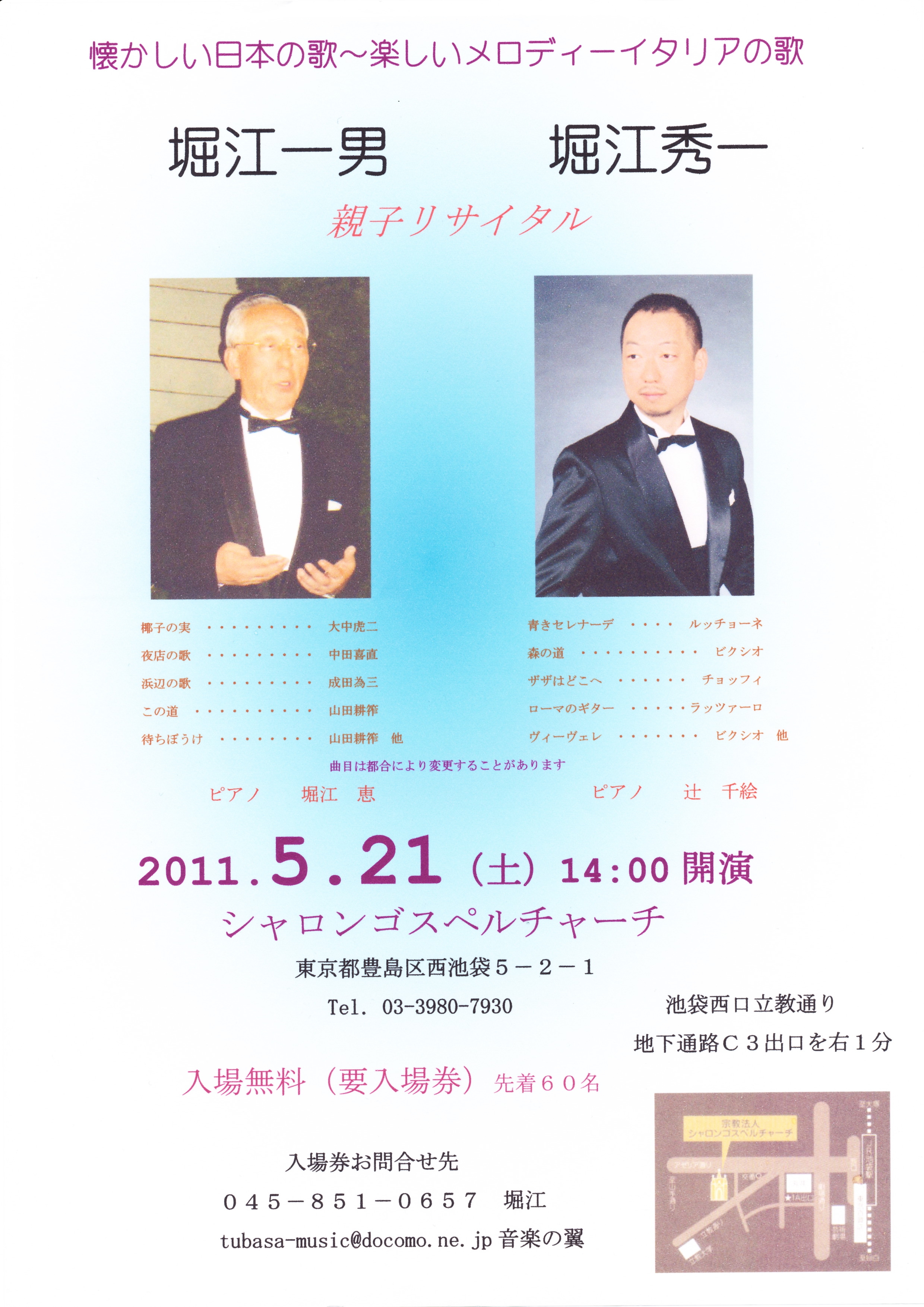 | 出演 | 榛葉昌寛 テノール 辻 千絵 ピアノ |