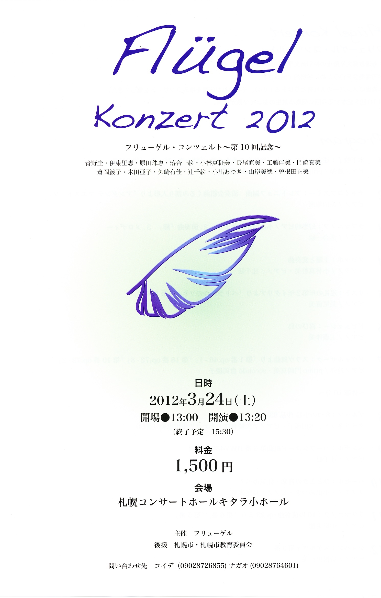 | 出演 | Fl 高橋紫 Fl 小林美穂 Pf 辻 千絵 |