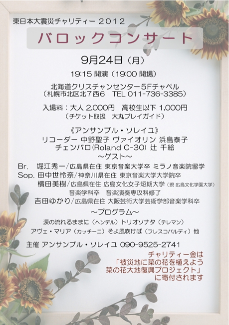 東日本大震災チャリティーコンサート 天理教手稲分教会