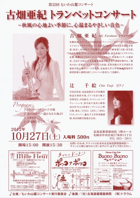| 出演 | 市川澄子 Mzs、Alt 川原敦子 Sop 辻 千絵、塚田 馨一 Pf |