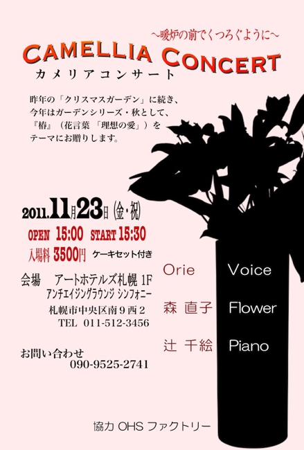 | 出演 | 花パフォーマンス 森 直子 ピアノ 辻 千絵 ヴォイス orie (ゲスト) |