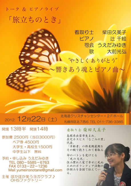 看取り士 柴田久美子 ピアノ 辻 千絵 司会 うえだみゆき 歌 大前光弘
