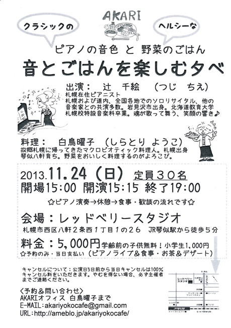 | 出演 | ピアノ弾き語り Michi Pf 辻 千絵 |