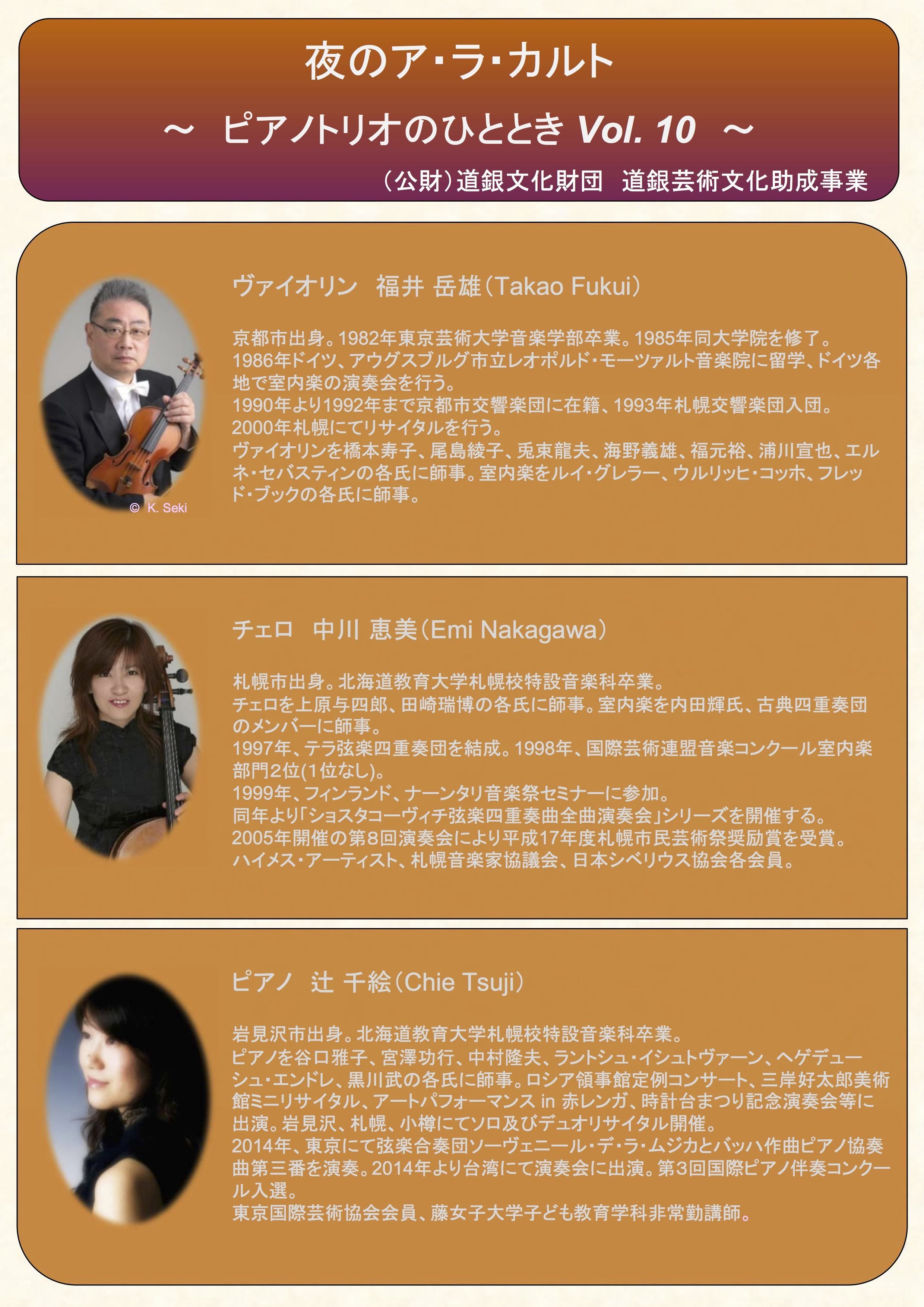 3/17(月)ピアノトリオのひととき vol.10 夜のア・ラ・カルト